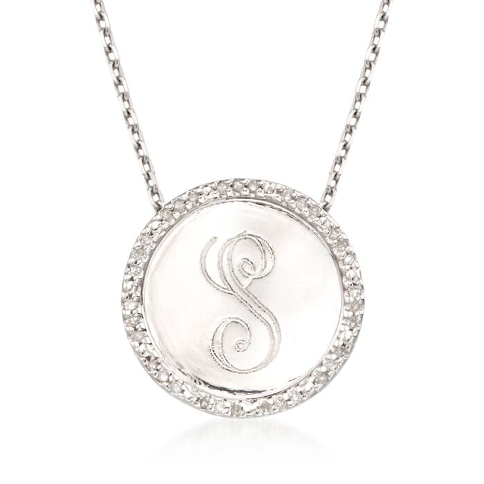 This personalized disc pendant necklace is haloed in a frame of .10 ct. t.w. diamonds. Comes with FREE engraving of a single initial in block or script font (please specify below). Includes sterling silver cable chain with 2