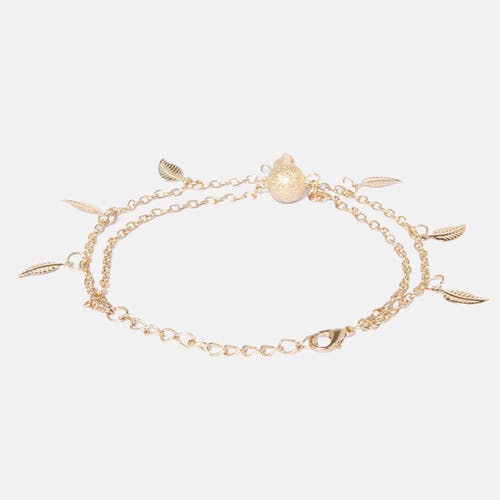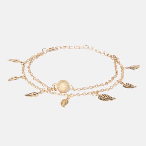 This layered, gold-toned anklet is a subtle beauty with leaf detailing. Team these with knee-length skirts and dresses to show off that dressed up ankle.