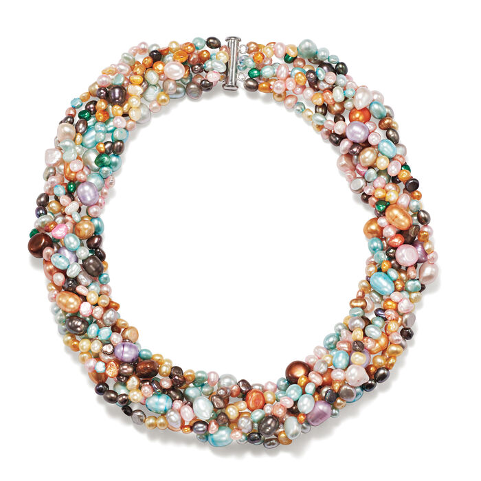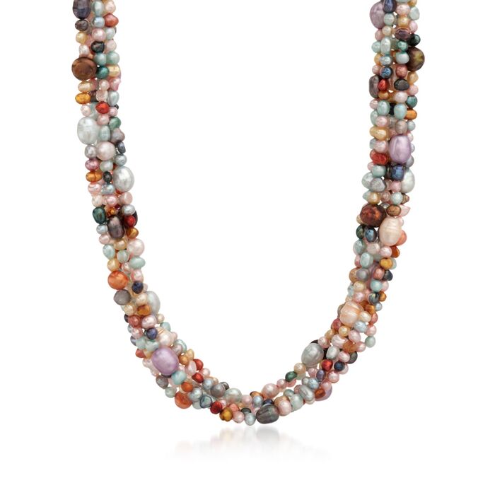 Sweeter than candy. This torsade necklace twists a colorful mix of 4-7.5mm cultured freshwater pearls. Necklace fastens with a sterling silver slide clasp.