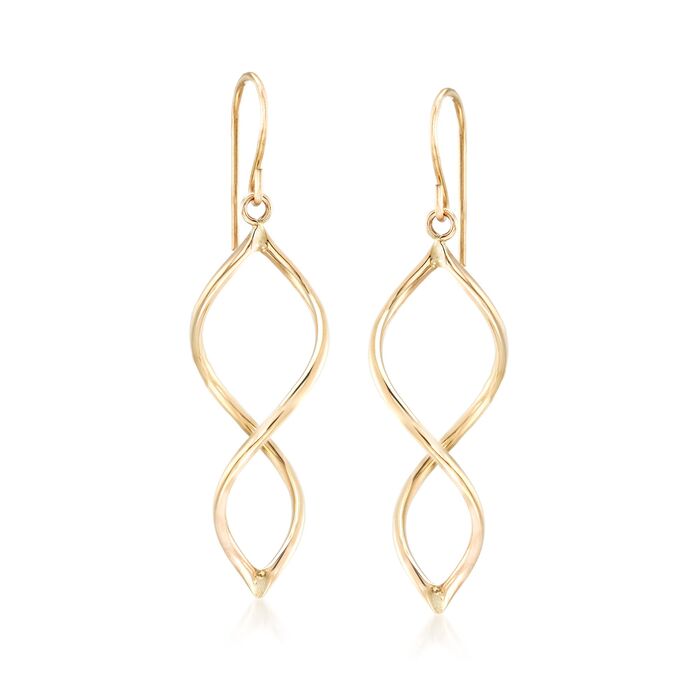 Sometimes simple is superior. Crafted in polished 14kt yellow gold, these open-space spirals dangle to 1 3/4″ and instantly enhance your already-stylish ensemble. 3/4″ wide. Earwire, 14kt yellow gold open spiral drop earrings.